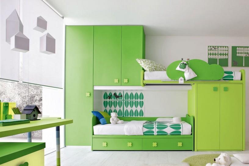 При оборудовании личных зон кровати для каждого ребенка обычно устанавливают вдоль параллельных или смежных стен. Если кровати располагают у одной стены, то их разделяют импровизированной перегородкой: стеллажом, комодом, тумбой.