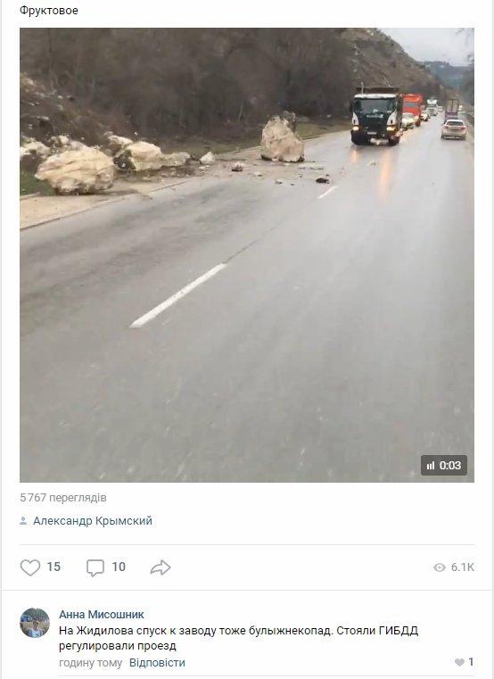 В соцсетях сообщают, что камнепад таже наблюдался у села Фруктовое и в Ялте.