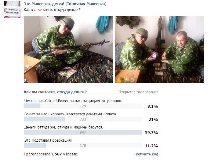 Интересно, что в группе "Это Макеевка, детка!", где были выложены снимки, 60% подписчиков считают, что деньги боевики получили таким же образом, как и машины. То есть - просто отжали у местных жителей.