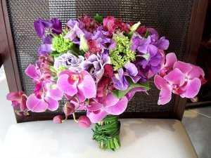 Цветочная мода очень капризна и непостоянна, но всегда на пике популярности волнующие орхидеи и аристократичная фрезия, смелый антуриум – цветок с хвостиком, как его называют. А второе название антуриума – цветок страсти. Кстати, антуриум – мужской цветок, он часто встречается в букетах для мужчин. Не забудьте о сакуре – цветущей японской вишни, вдохновившей множество поэтов на лирику. Используйте экзотические цветы и букет невесты станет самым модным и экстравагантным украшением свадьбы, подчеркнув её неповторимость. И здесь пальму первенства держит фрезия, соперничая с розами, ромашками и орхидеями.