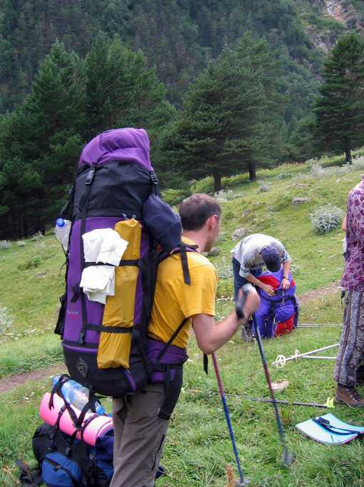 Вот ряд полезных советов. Выбирая рюкзак, надо прежде всего посмотреть, чтобы он был достаточно вместительным. Многие из рюкзаков так малы, что пригодны только для воскресных походов. Лучше выбрать рюкзак со вшитым дном — он и вместительнее и удобнее при переноске. Нужно, чтобы у него были широкие лямки. Узкие лямки больно режут плечи, от них нарушается кровообращение и затекают руки. Если лямки узки, их нужно подшить войлоком, фетром или, наконец, сшить узкий длинный мешочек, уложить туда вату и прошить. Получится нечто вроде длинной плоской подушки. Если же вместо плоской подушечки получится круглый валик, то это может оказаться еще хуже, чем вовсе не подшитые лямки. Но подшивка лямок требует времени, да и подходящий материал не всегда сразу находится. Если рюкзак с узкими лямками достаточно тяжел, то через час-полтора натертые плечи начнут напоминать о себе. Что делать? Не останавливать же движение всей группы и заниматься подшиванием лямок? Выход очень простой. Надо достать из рюкзака что-нибудь из одежды — рубашку, куртку, майку, аккуратно сложить несколько раз и подложить на плечи под лямки. Для больших походов (7—10 дней и более) хороши альпинистские и охотничьи рюкзаки, с вшитым дном, двумя боковыми и одним задним карманом. Лямки у них, как правило, достаточно широкие. Много неудобств в пути могут доставить неправильно подогнанные лямки. Слишком короткие врежутся в плечи, да и рюкзак могут поднять так, что он лишится опоры на пояснице. Слишком длинные опустят рюкзак вниз — это тоже неудобно. Опытный турист сразу почувствует, хороши ему лямки или нет, а новичку рекомендуется, уложив рюкзак, обязательно попробовать несколько раз укоротить и удлинить, лямки, чтобы подобрать наиболее удобную для себя длину. В случае необходимости лямки надо укоротить, проделав новые отверстия, или, наоборот, надставить, чтобы сделать длиннее. Грубая фактура рюкзачного брезента, а особенно лямок часто вызывает раздражение кожи плеч и спины, которое затем легко переходит в потертости, поэтому одевать рюкзак на голое тело не рекомендуется. Укладка вещей в рюкзак — очень важное умение и, кстати говоря, совсем не такое простое, как это кажется на первый взгляд. Прежде всего надо твердо запомнить, что все вещи должны быть в рюкзаке. Между тем нередко приходится видеть в походе туристов, несущих в руках палатки, ведра или хозяйственные сетки. Руки должны быть свободны от груза для того, чтобы пользоваться компасом, чтобы вынуть карту или блокнот, чтобы отвести ветки, когда идешь по лесу, чтобы придерживаться или страховаться при преодолении встречающихся в походе препятствий, наконец, чтобы при необходимости подать руку товарищу. Почти все понимают, что, собирая рюкзак, надо прежде всего уложить к спине мягкие вещи — одеяло, куртку, свитер и т. д. Но далеко не все знают, что мало расстелить их равномерно вдоль всей спины. Надо, чтобы внизу спины образовался небольшой мягкий валик. Тогда вес груза распределится между плечами и поясницей. Иначе рюкзак будет сильно оттягивать плечи. Иногда неопытные туристы набивают рюкзак так, что он становится похожим на шар. Нести такой рюкзак очень неудобно — место соприкосновения со спиной слишком мало. Надо стараться, чтобы рюкзак широко прилегал к спине. Поэтому важно следить за тем, чтобы вещи в средней части не за