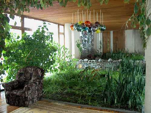 Драцена и юкка, хлорофитум и плющ, традесканция, горшечная гортензия и комнатный кипарис - желанные гости открытых веранд. Если площадка крытая, то растения могут даже оставаться в своих привычных декоративных кашпо. |
