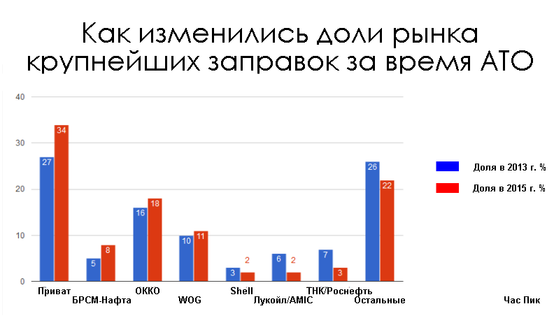 В частности, в 2013 году доля сети АЗС «Привата» по Украине составляла 27%, в 2015-м она выросла до 34%.