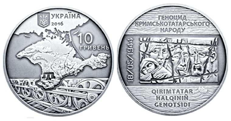 Национальный банк Украины 12 мая вводит в обращение монету номиналом 10 гривен, посвященную памяти жертв геноцида крымскотатарского народа.