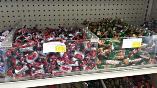 Так, конфеты «Красный мак» и «Орешник» (453 г) стоят по 6,99 долларов, а это значит, что за килограмм сладостей американцу придется отдать чуть более 15 долларов. Шоколадно-вафельный батончик «Сливки-ленивки» стоит практически один доллар — 0,99.