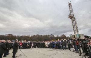 Президент Петр Порошенко побывал на Колодницком газовом месторождении в Стрыйском районе Львовской области, где поучаствовал в начале добычи сырья и зажег символический факел.