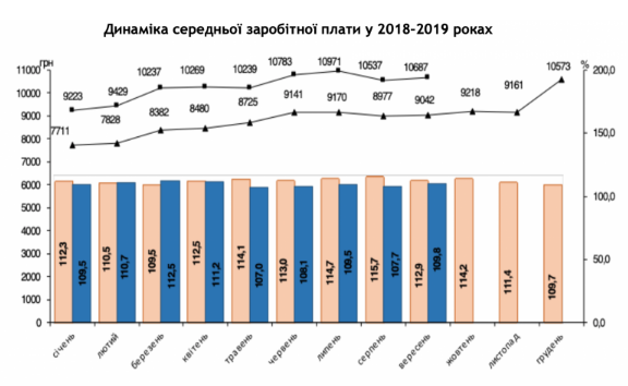 "Для сравнения, средняя зарплата в сентябре 2019 составила 10 687 грн.", - заявил Милованов.