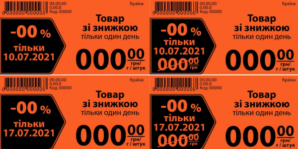 Согласно условиям акции, акционные товары будут помечены красными ценниками (см. образец).
