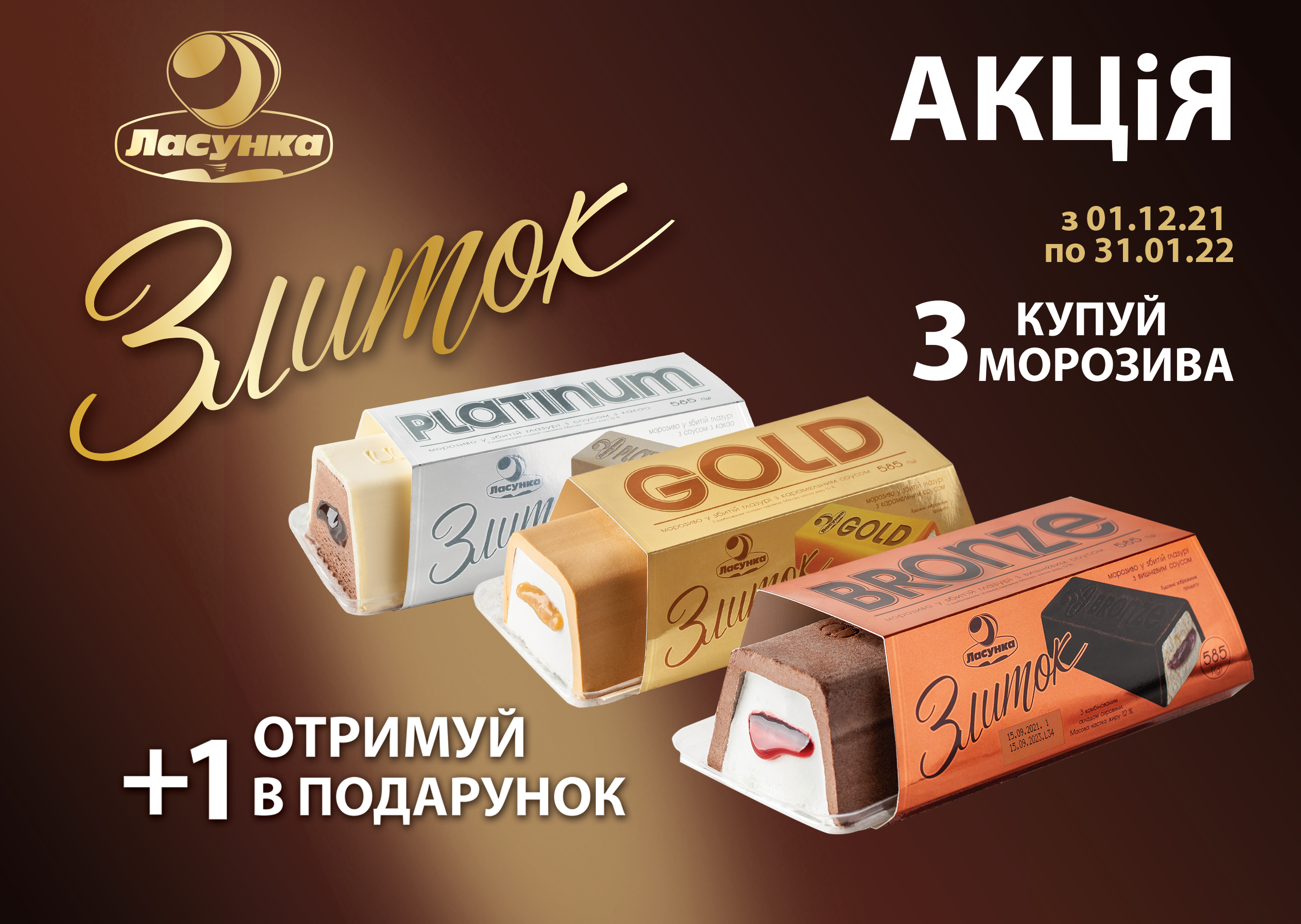 Именно поэтому в период с 01.12.2021 по 31.01.2022, покупая мороженое «Слиток» в количестве 3-х позиций, вы получите еще один в ПОДАРОК!