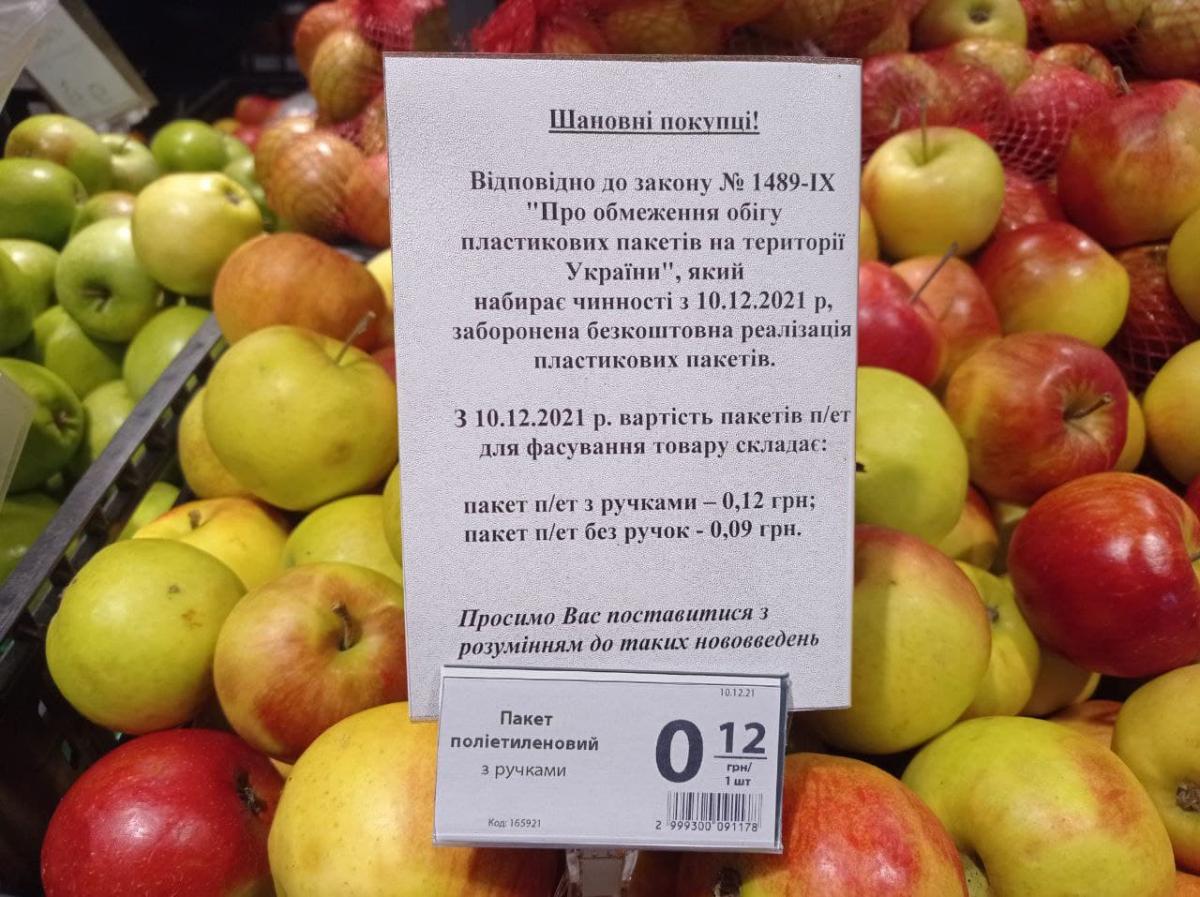 С 10 декабря в силу вступил закон "Об ограничении обращения пластиковых пакетов на территории Украины", в связи с чем реализация пластиковых пакетов стала платной.