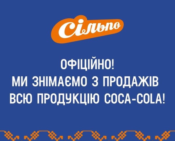 В сети супермаркетов Сильпо заявили, что с сегодняшнего дня они убирают с полок все продукты Coca-Cola и прекращают дальнейшие закупки.