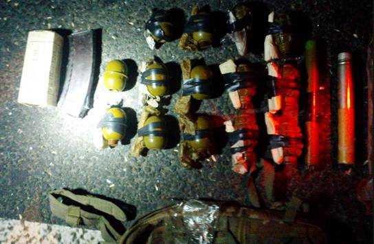 Кроме водителя в салоне автомобиля находилось пять мужчин и женщина. При осмотре транспортного средства и личных вещей граждан правоохранители обнаружили 14 гранат РГД-5 и Ф-1 и 13 запалов к ним. В частности, одну боевую гранату было найдено в дамской сумочке пассажирки. Также в автомобиле было обнаружено магазин и 150 патронов к автомату АКСУ-74 и 5 сигнальных ракет.