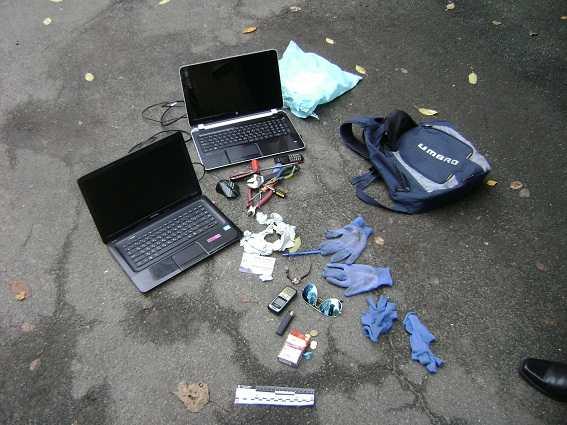 Один держал сумку, в другой был рюкзак. Внутри оказались три ноутбука, женская куртка, мужской и женский наручные часы, золотые украшения. Кроме этого, при себе мужчины имели отвертки и разводной ключ.