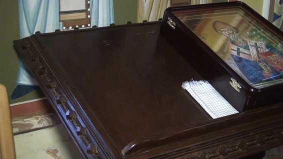 На место происшествия немедленно выехала следственно-оперативная группа Печерского райуправления милиции в полном составе и руководство. К правоохранителям обратился святой Иоанн - ответственный в храме, где произошла кража. Он рассказал, что в воскресенье, после праздничного служения, продавец церковного товара на одной из подставок обнаружила отсутствие иконы.
