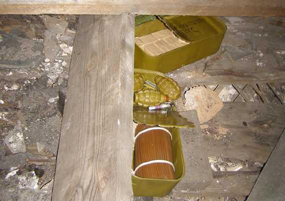 Изъятие обнаруженных предметов проводили сотрудники следственно-оперативной группы Константиновского городского отдела милиции. Тщательно замаскированный тайник содержал 2 гранатомета РПГ 18, 4 гранаты Ф-1, 15 упаковок патронов калибра 5.45 мм, тротиловую шашку весом 400 граммов.