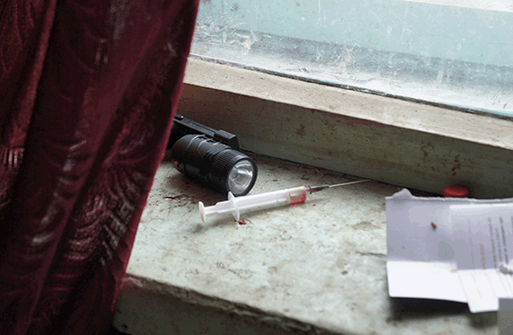 В ходе осмотра места происшествия оперативники изъяли 13 шприцев с остатками наркотического вещества.