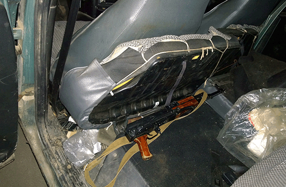 Сотрудники Госавтоинспекции обнаружили и изъяли спрятанные в салоне автомобиля «Chevrolet Niva» автомат АКС 47, 5 магазинов и 153 патрона к нему.