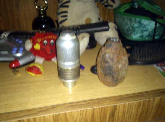 В присутствии понятых милиционеры изъяли у любителя военных трофеев корпус гранаты Ф-1 и гранату из подствольного гранатомета. Изъятое направлено на экспертизу.