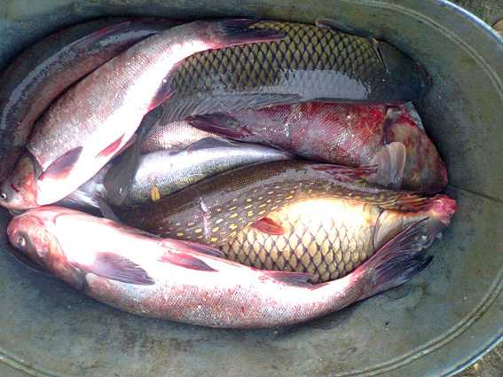 В ходе осмотра места происшествия правоохранители обнаружили и изъяли три рыболовецкие сети и другое снаряжение, а также более сотни раков и более 70 штук различных видов рыбы.