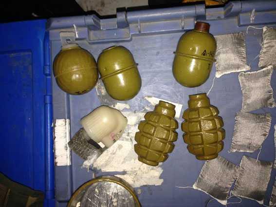 В посылке были обнаружены аккуратно упакованы 5 гранат (3 - РГД, 2 Ф-1), 26 пакетов с порохом, 14 взрывных пакетов, 5 тротиловых шашек, около 100 патронов калибра 5.45 и 7.62. Кроме того, там же находились металлическое устройство, похожее на оптический прицел, мобильный телефон и видеорегистратор.