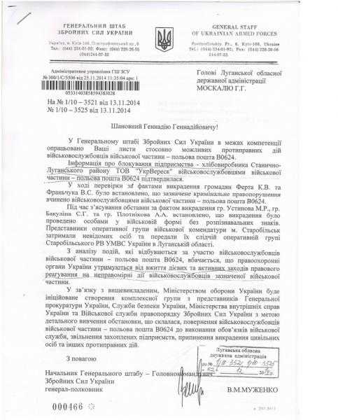 Копия ответа Муженко, а также обращение руководства ООО «УкрВереск» к Г.Москалю добавляется на усмотрение читателей.