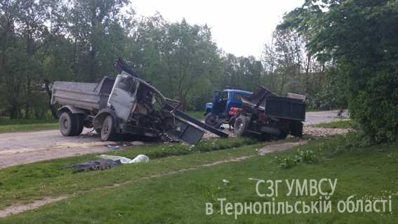 Столкнулись два грузовых автомобиля. По предварительным данным и со слов очевидцев, ЗИЛ, груженный камнем, ехал в сторону Тернополя. Ему на встречу двигался другой грузовик - МАЗ. В какой-то момент и по непонятным пока причинам последний выехал на полосу встречного движения и врезался в левую часть ЗИЛа.