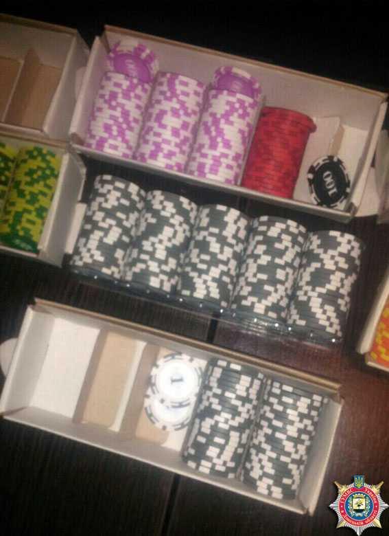 В результате обыска в указанном кафе изъяты покерный стол, игральные фишки на 116 тысяч гривен, 18 колод игральных карт, таймер игры, планшеты, записи должников и результатов проведенных игр.
