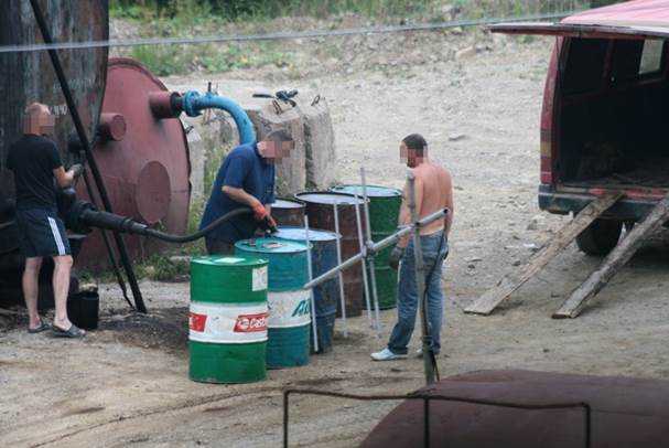 Неучтенный остаток злоумышленники отправляли на два мини-подпольных перерабатывающих предприятия. Там в кустарных условиях изготавливалось дизельное топливо, битум и самодельный бензин. Мощность цехов позволяла еженедельно перерабатывать от трех до пяти тонн нефти-сырца. Используя организованную сеть сбыта, правонарушители реализовывали продукцию по цене, ниже рыночной.