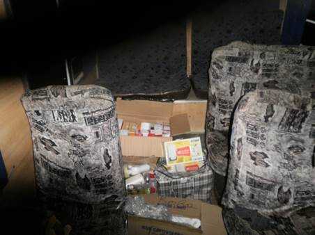 При осмотре автомобиля правоохранители обнаружили картонные коробки и сумки, в которых находились сотни мобильных телефонов, в частности тактические модели, соединительные муфты для кабелей распределительных телефонных сетей, автоматические однофазные стабилизаторы напряжения. Маршрутка, которая выехала из Северодонецка, также перевозила гигиенические средства на 50 тысяч гривен.