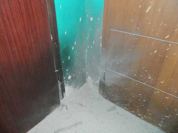 Выездом на место следственно-оперативной группой установлено, что в подъезде взорвалась граната. В подъезде повреждены несколько входных дверей в квартиры.