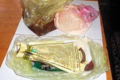 Сотрудниками отдела режима и охраны и оперативного отдела учреждения было обнаружено и изъято в пакете со сгущенным молоком два презерватива, в которых находилось вещество светло-коричневого цвета и в тюбике с майонезом два небольших свертка.