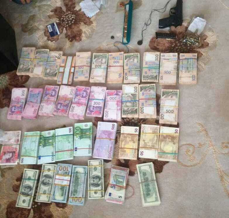 В ходе обысков изъято 68 тыс, 100 тыс евро, 1 млн грн, брендовые часы, расписка на 160 тыс у.е., печати фиктивных фирм. Характерно, что один из несунов имел паспорт РФ.