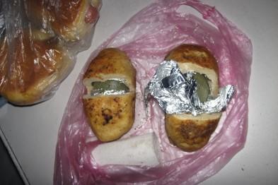 После того, как пироги надломили, в некоторых из них обнаружили вещество серо-зеленого цвета, которое было обмотано в фольгу. Всего было выявлено 20 грамм наркотического вещества в 2 пирожках.