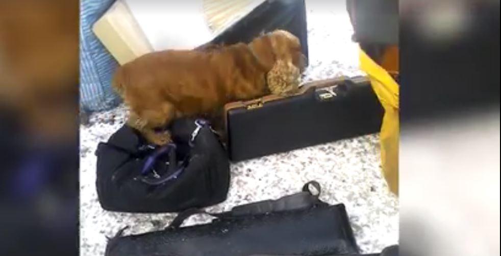 Видео подписали так: "Четвероногий помощник пограничников Дилан во время выполнения задач. Оружие и боеприпасы обнаружены".