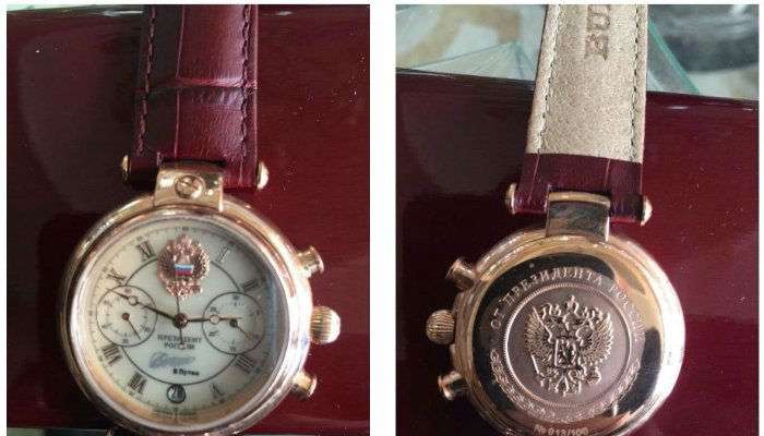 Во время обыска по месту проживания злоумышленника правоохранительными органами обнаружены и изъяты золотые именные часы президента Российской Федерации.