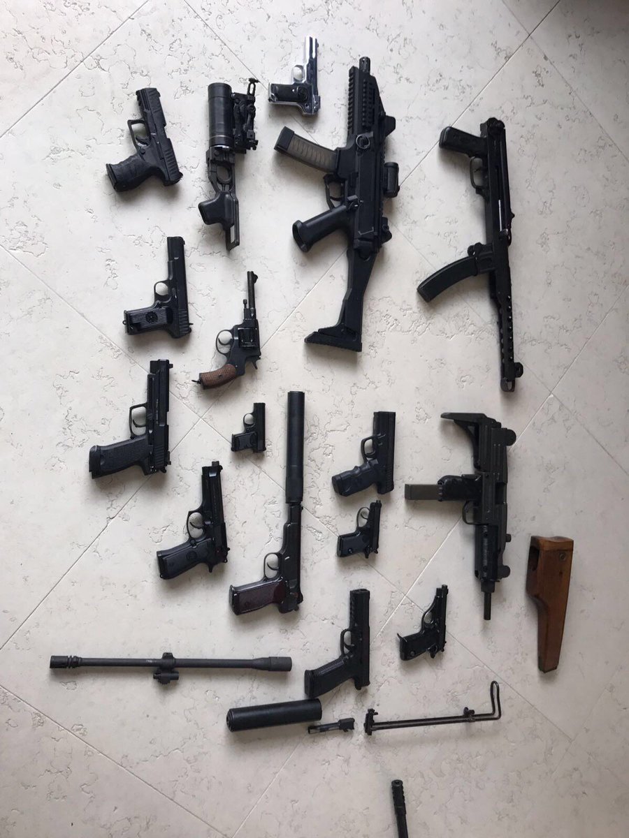 Во время обысков, проведенных в начале марта по местам проживания фигурантов дела правоохранители изъяли большое количество огнестрельного оружия и комплектующих производства ведущих оружейных предприятий со всего мира: Германии, Австрии, Чехии, Швейцарии, Бельгии, Италии, США, Израиля, России и других стран. Изъятые образцы огнестрельного оружия переданы на экспертизу.