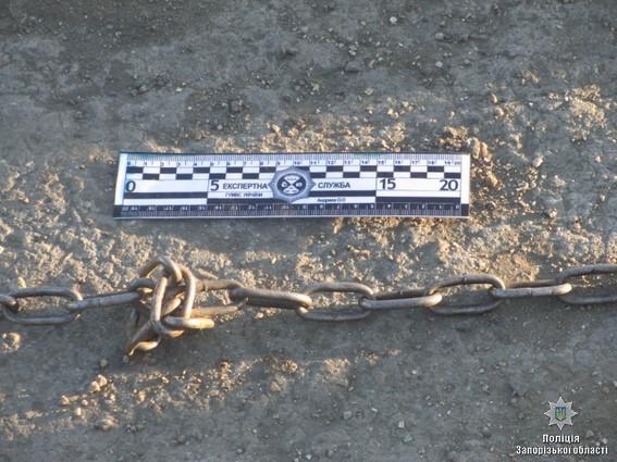 На место происшествия сразу выехала следственно-оперативная группа, руководство ГУНП и Мелитопольского отдела полиции. В ангаре правоохранители обнаружили мужчину 1971 г.р., который был прикован цепью к металлической трубе.