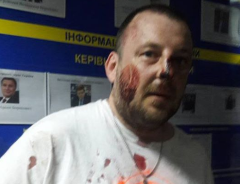 На фото - один из добровольцев после "общения" со стражами порядка.