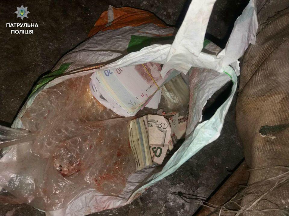 По словам сына потерпевшей, который впоследствии прибыл на место, злоумышленник украл 160 тыс. гривен, 82 тыс. долларов США и 3 тыс. евро. От жителей дома стражи порядка узнали: грабитель все еще скрывается в помещении.