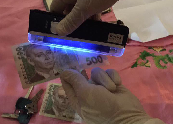 Правоохранители задержали взяточника и посредника, который непосредственно получал средства от предпринимателей, при получении очередной части неправомерной выгоды в размере 10 тыс. гривен.