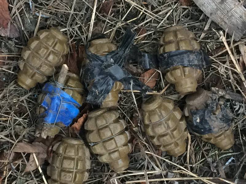 После разминирования правоохранители изъяли из тайника одиннадцать гранат РГ-42 и Ф-1 с запалами, пять гранатометных выстрелов ВОГ-17, двести граммов пластида, две мины МОН-50 и ОЗМ-72 с электронным детонатором, которые находятся на вооружении исключительно в армии РФ. Боевики также оставили после себя использованные индивидуальные продуктовые наборы, которые выдают российским военным.