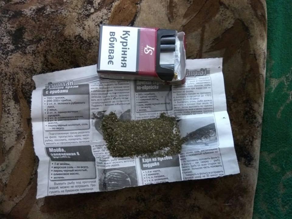 При проведении личного обыска у задержанной в личных вещах полицейские обнаружили и изъяли 2 газетных свертка с каннабисом общим весом около 10 граммов, деньги в сумме 1000 гривен, которые она получила от сбыта наркотиков.