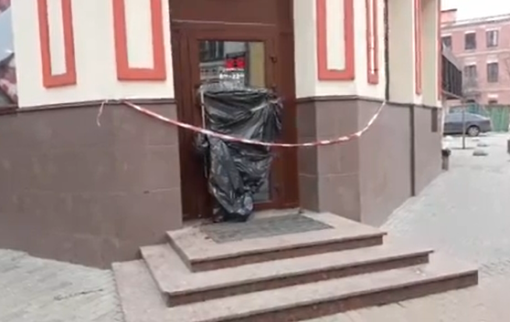 По данным корреспондентов, сразу у входа внутри ресторана большая лужа крови, из-за чего полицейским пришлось занавесить прозрачную дверь.