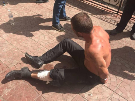 В соответствии со ст. 46 Закона Украины "О Национальной полиции" (Применение огнестрельного оружия) один из инспекторов совершил предупредительный выстрел вверх из табельного оружия, однако мужчина не реагировал и в дальнейшем продолжал угрожать полицейским. После неоднократных предупреждений прекратить правонарушение, полицейский произвел несколько выстрелов в правонарушителя, ранив его в ногу.