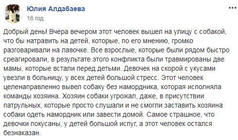 По ее словам, на опасность быстро среагировали взрослые. В результате собака покусала двух мам, которые закрыли собой детей. Их увезли в больницу, у детей большой стресс.