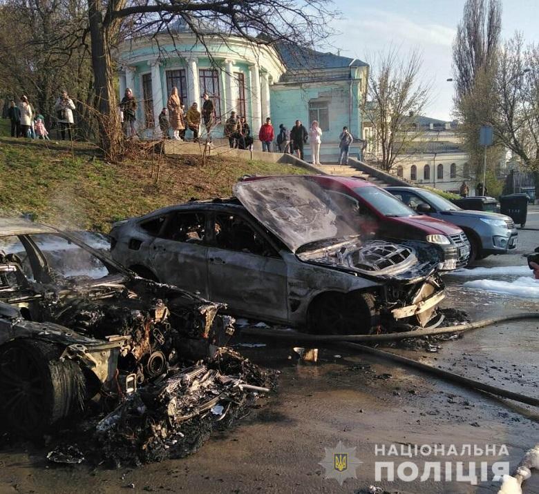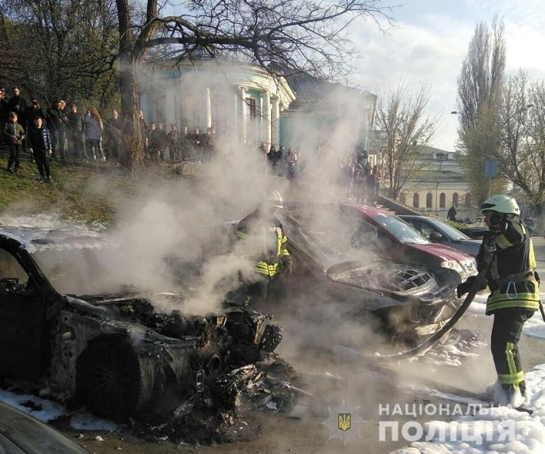 В дежурную часть Печерского управления полиции поступило сообщение о том, что на улице Владимирский спуск горит авто. На место происшествия немедленно выехала следственно-оперативная группа и пожарные.