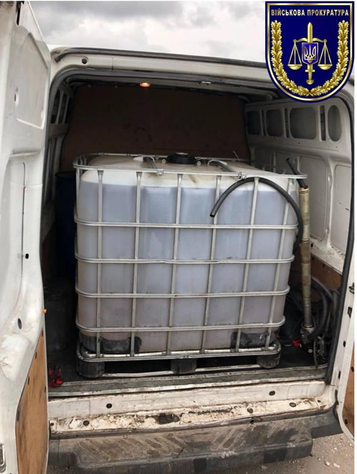 16 апреля 2019 года военной прокуратурой Луганского гарнизона из состава Объединенных сил, совместно с сотрудниками УЗЭ в Луганской области ДЗЭ НП Украины, с участием КОРД ГУ НП в Луганской области, после похищения с территории воинской части топлива в количестве двух тонн и завоза их к месту продажи, в порядке требований ст. 208 УПК Украины, задержан один из исполнителей преступления гражданин В. При проведении обысков обнаружено и изъято военного топлива общим объемом более трех тонн, емкости для похищения и хранения топлива, изготовленную кустарным способом заправочную колонку, черновые записи учета реализованного военного топлива.