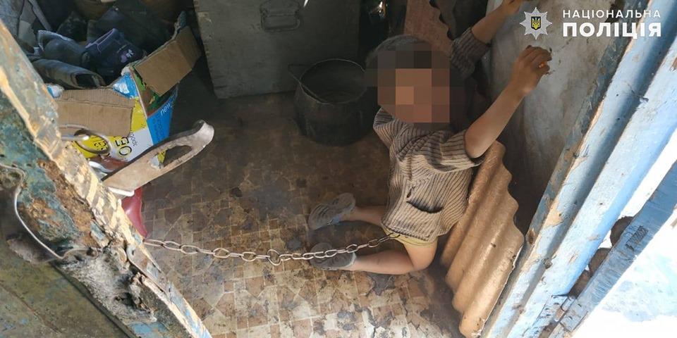 В ходе проверки одного из домов, полицейские в коридоре увидели 6-летнего ребенка, который металлической цепью был привязан к входной двери.