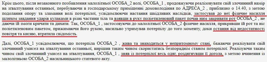 Повалив на пол, он начал бить Дашу кулаками в различные части тела, а потом зажал рот пакетом. Когда девочка потеряла сознание от недостатка воздуха, Тарасов раздел ее догола и попытался изнасиловать.
