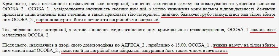 "После содеянного преступник решил еще и поглумиться над телом ребенка, поместив его в выгребную яму. Погрузив тело Даши в нечистоты, он скрыл следы своего преступления, после чего сжег одежду ребенка и зачистил место расправы", - сказано в документе.